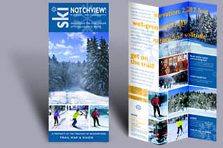 Trail map and guide for cross-country skiing at Notchview, Windsor, MA.